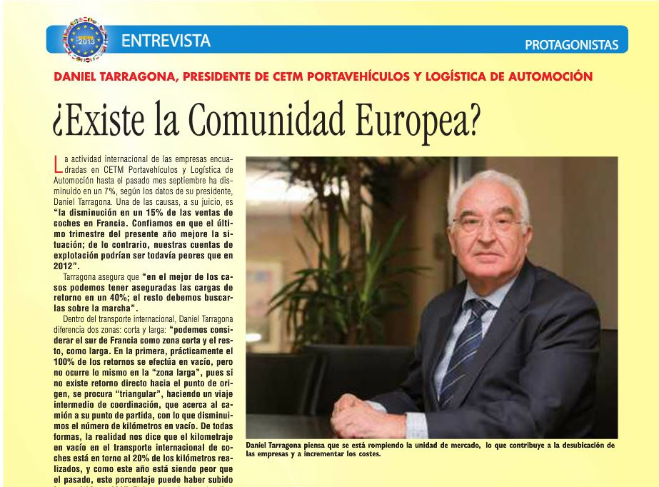 Barcelona, 10 de diciembre del 2013.- Daniel Tarragona, Consejero Delegado del Grupo SETRAM y Presidente de CETM Portavehículos y Logística de Automoción, ha sido entrevistado por la revista Transporte Profesional. A continuacion, destacamos las reflexiones mas destacadas y la publicación completa de dicha entrevista.