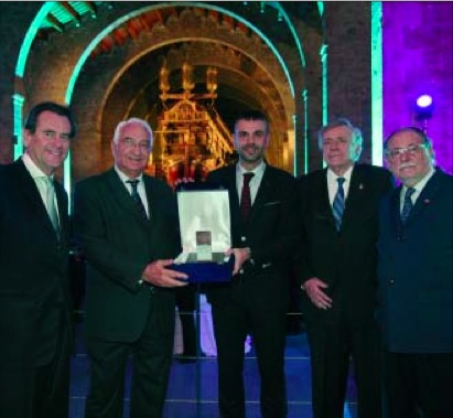 Barcelona, 29 de enero del 2014.- Daniel Tarragona, Presidente del Grupo SETRAM, recogió ayer el Premio “Lingote de Plata Barcelona Port 2013”, organizado por el Grupo Editorial Men-Car. Su presidente, Juan Cardona, y Sixte Cambra, presidente del Puerto de Barcelona, fueron los encargados de entregar este galardón anual. La ceremonia se celebró en la Grada Majo (antiguo Fossas de les Galeres) del Museu Maritim de Barcelona con la asistencia de 600 personas de la comunidad logística.