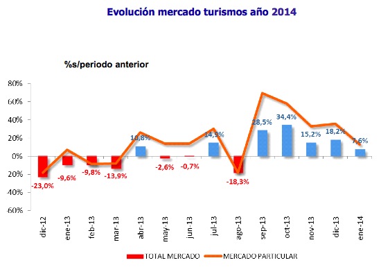 David Barrientos, Director de Comunicación de ANFAC afirmó que “El PIVE 5 empieza a mostrar su fortaleza y su eficacia, ya que ha permitido que en los últimos días del mes, el mercado remontase hasta cerrar el mes en positivo. Este mes ha consolidado la tendencia positiva de los últimos meses, siendo el quinto mes consecutivo de crecimiento. El impulso del Plan PIVE 5 permitirá que el mercado supere las 800.000 unidades en el año 2014 y, podamos seguir dando pasos hacia la recuperación económica del país. Además, los Planes PIVE junto a los esfuerzos comerciales de marcas y concesionarios han confirmado la tendencia a la baja en los precios de los automóviles. Hoy en día, según las estadísticas del INE (Instituto Nacional de Estadística), en términos reales, resulta un 15% más económico adquirir un vehículo que hace 6 años. De hecho, en el año 2013, de nuevo el precio de los vehículos se sitúa por debajo del índice general de precios al consumo. Nos encontramos ante un momento propicio para adquirir un vehículo.”.