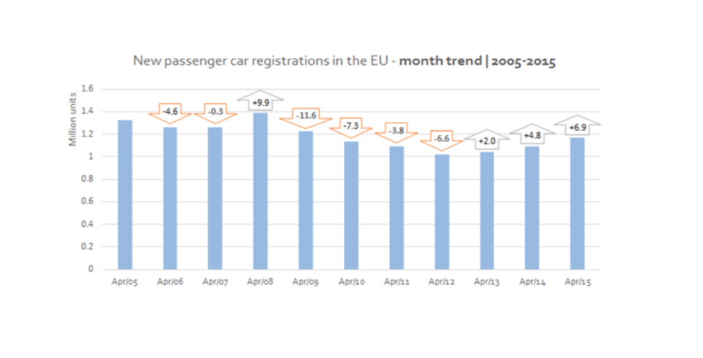 Barcelona, 20 de mayo del 2015.- Según ha destacado ANFAC, España continúa a la cabeza en el crecimiento del mercado de turismos en el primer cuatrimestre del año. Sin duda, el efecto de los Planes PIVE ha sido el detonante básico para posicionar a España como mercado líder en crecimiento en ventas de coches.