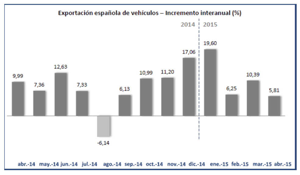 En el primer trimestre del año, se han exportado vehículos por valor de 8.476 millones de €, lo que significa un incremento del 17,3%. La exportación de turismos sigue creciendo un 29,4% más y alcanza un valor de 7.309 millones de €. Los vehículos industriales, que descendieron un 25,9% en el trimestre, totalizando un valor de 1.167 millones de € en el primer trimestre. En el caso de incluir también las exportaciones de componentes y piezas, el valor total de las exportaciones han alcanzado los 11.269 millones de € con un incremento respecto al año anterior del 13,2%. Esto arroja un superávit comercial de los fabricantes de vehículos en el primer trimestre de casi 4.413 millones de € lo que representa un crecimiento del 3,2%. Para el caso concreto de los automóviles de turismo, el incremento del saldo positivo ha sido del 25,7% y un total de 3.772 millones de €. Sin embargo, a pesar de que los vehículos industriales presentaron en el primer trimestre un saldo positivo de 640 millones de €, la evolución de estos vehículos sigue en niveles negativos respecto al año anterior, un 49,7% menos.