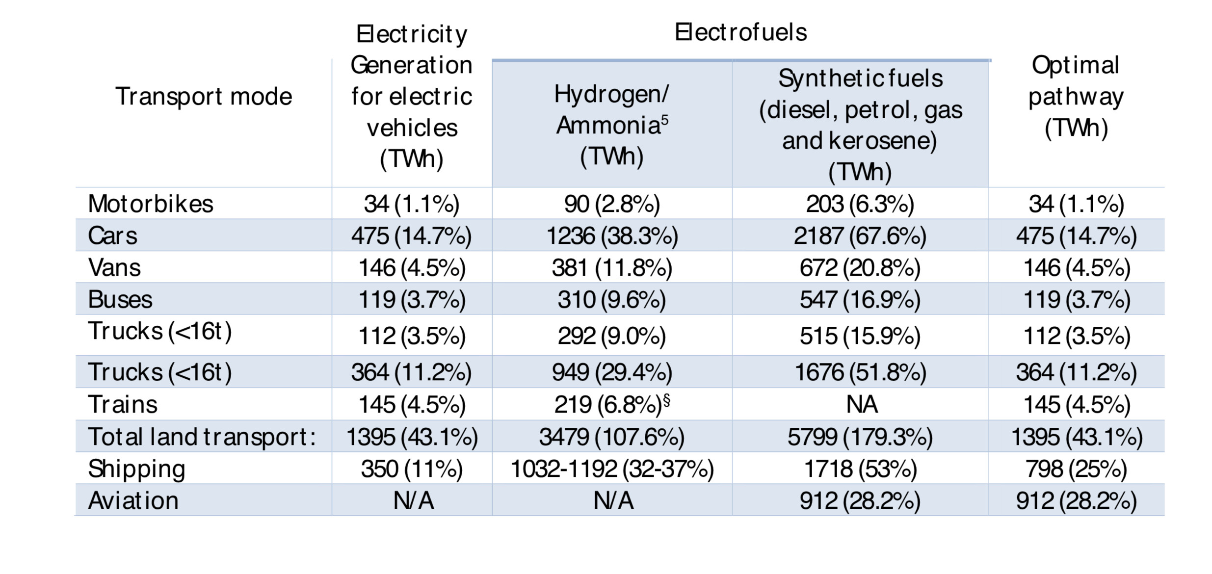 Decarbonising the entire European economy will require a holistic approach. Most transport modes can be decarbonised following different pathways. However, they have very different implications for the overall energy system. Unless ways are found to exponentially increase the amount of zero emission electricity at low cost it will remain important to minimise the need for additional clean electricity. This means that an approach focused on using the most efficient pathways (direct charging) wherever possible is recommended. Given the much lower efficiencies of hydrogen but in particular electrofuels, these are optimally used only where no other alternatives exists.