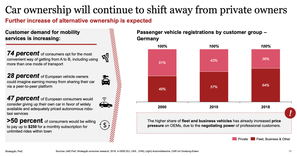 - Shared: our research shows that 47 percent of European consumers would consider giving up their own car in favor of widely available and adequately priced autonomous robo-taxi services.