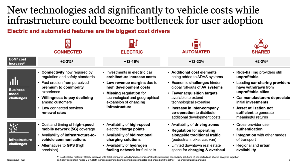- Connected: sales of 5G enabled vehicles are expected to reach 16 million in the EU, US and China by 2030. However, we believe connected services mainly make a positive contribution to user experience with little potential for OEMs and suppliers to make money directly from connectivity.