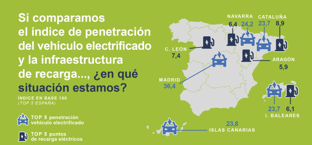 Barcelona, 3 de agosto.- ANFAC elabora periódicamente su Indicador Global de la Electromovilidad para diagnosticar el nivel de implantación de la infraestructura para el vehículo eléctrico. Su último análisis muestra los siguientes datos: